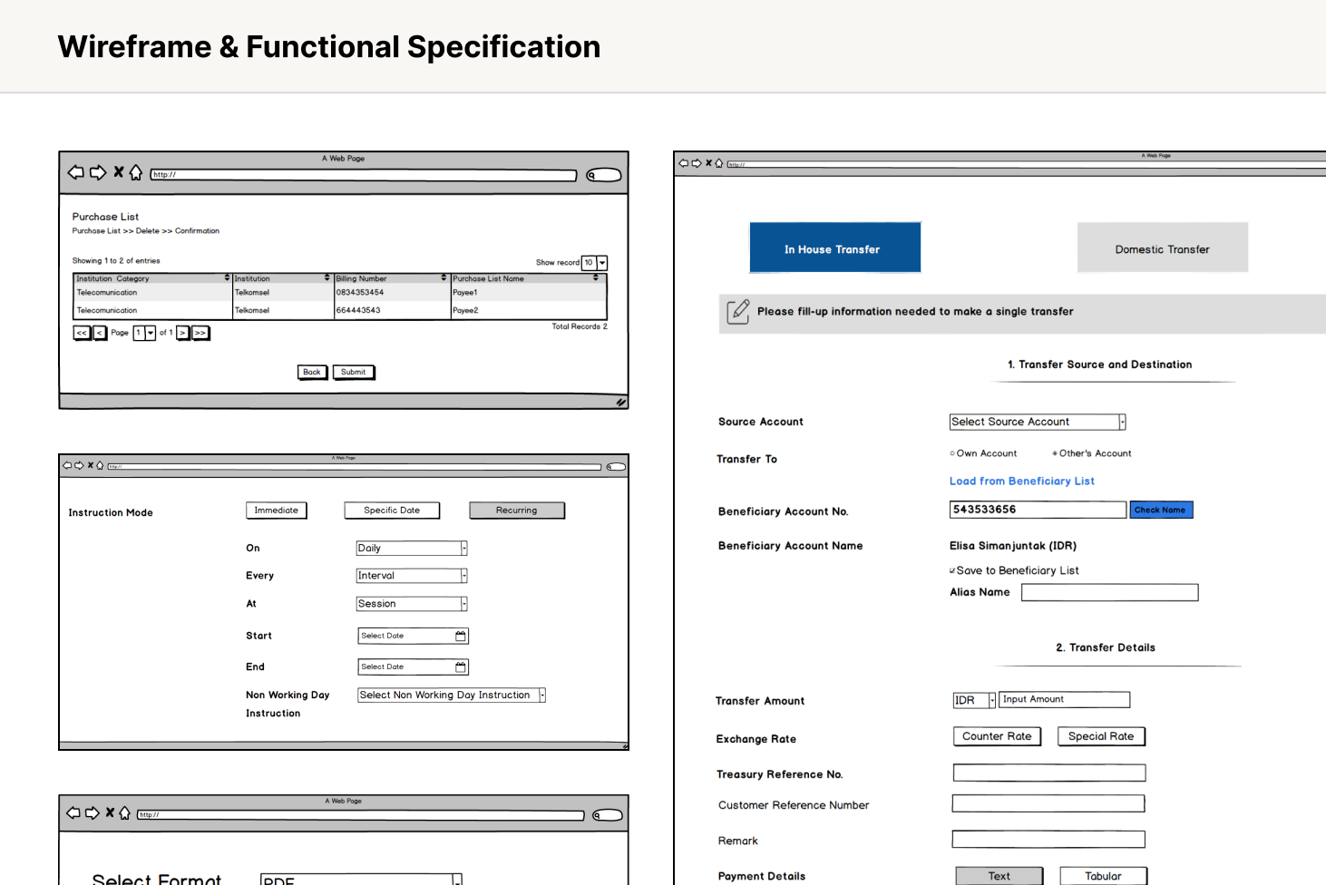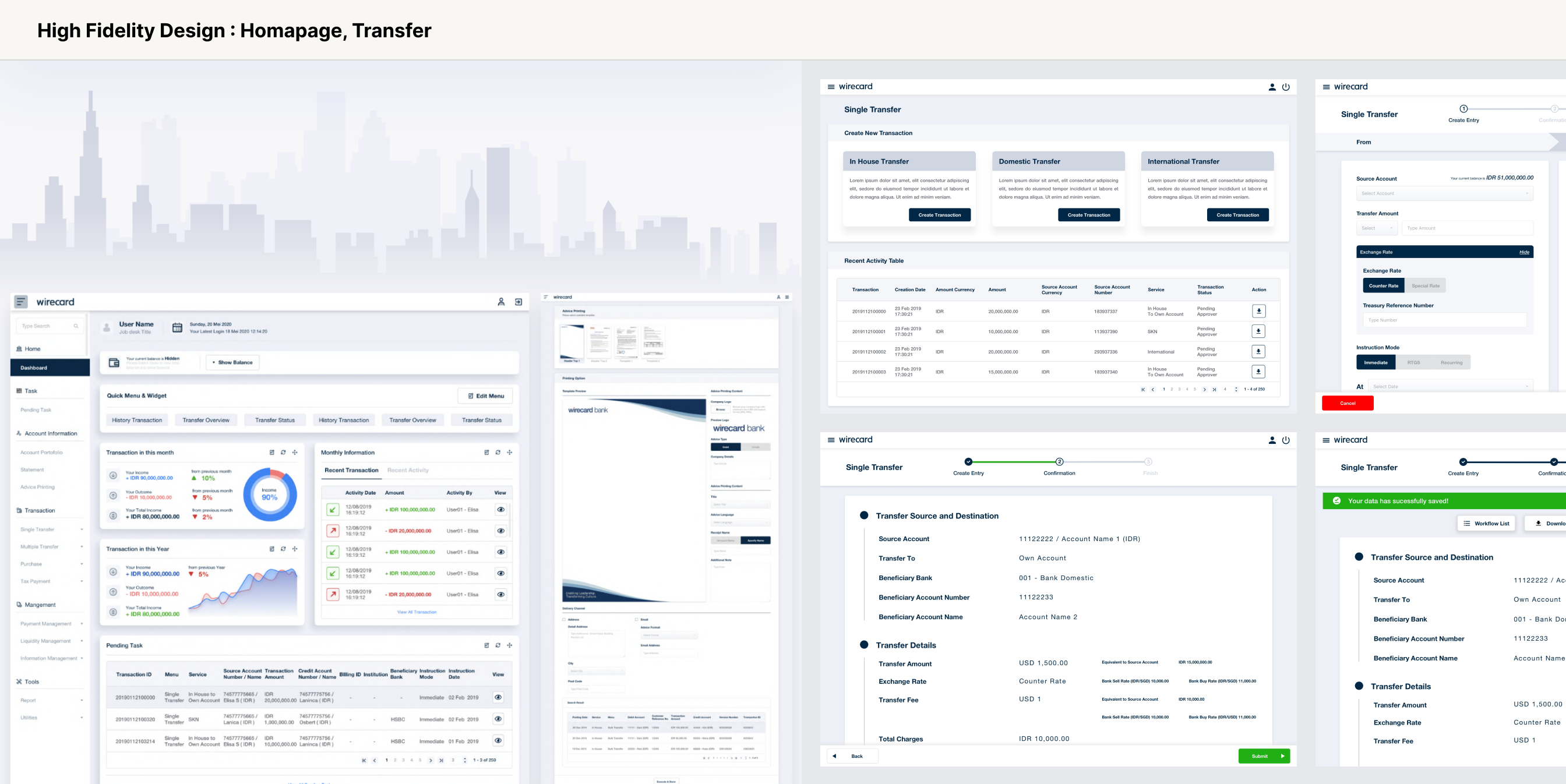 Beginning with user journey mapping to map out corporate users’ pain points. Wireframes, hi-fidelity design and prototypes were tested with both bank staff and corporate treasurers to ensure usability. Key features included a real-time payment tracker, customizable reporting dashboards, bulk payroll uploads, automated tax filing integration, and liquidity forecasting tools. Accessibility and simplicity were prioritized to balance the complexity of financial operations with an intuitive user interface.