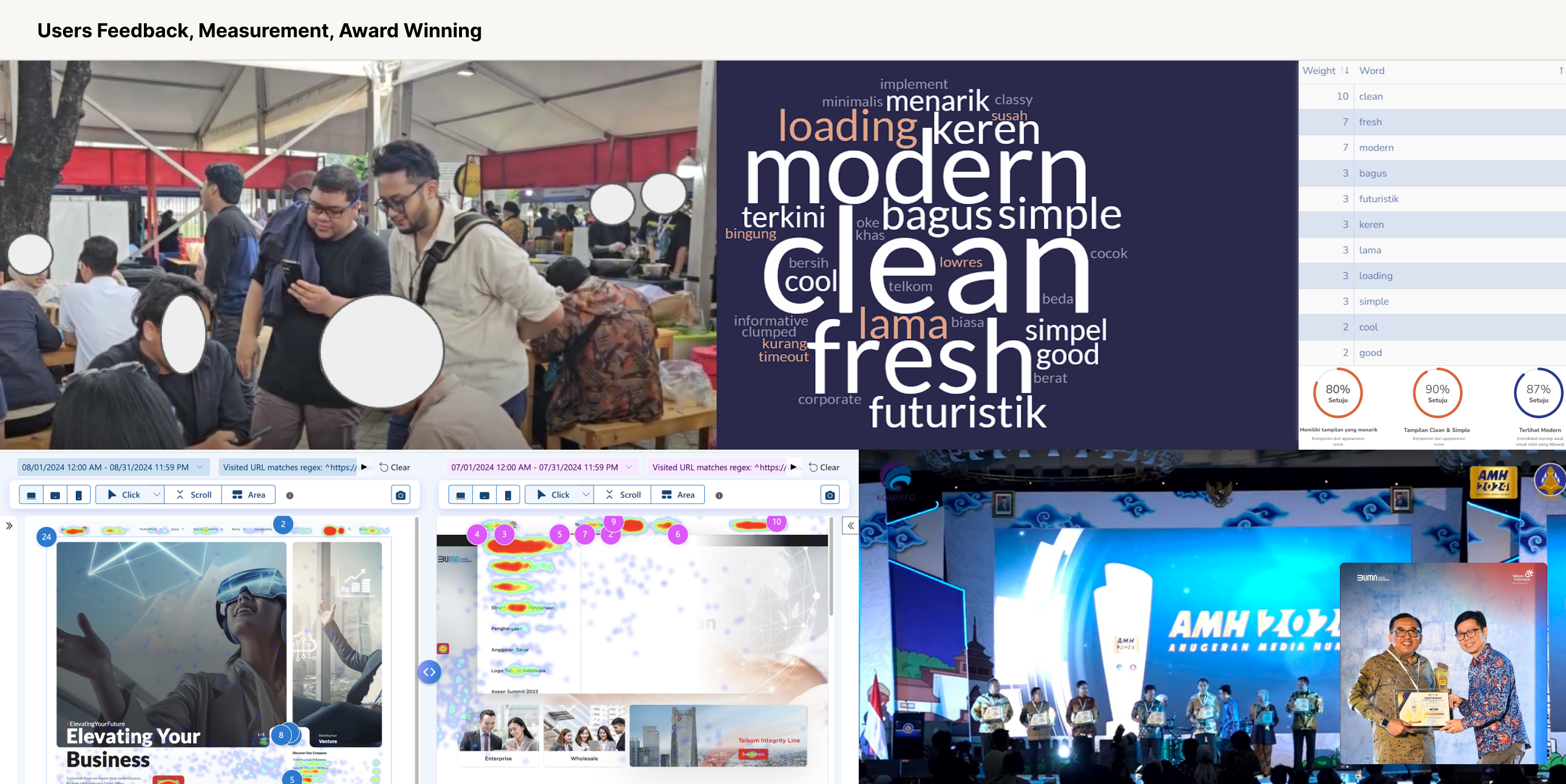 Successfully delivered the intended brand persona, with user feedback affirming its modern and clean appearance. The Investor Relations page achieved a 5x or 400%+ increase in traffic, while overall website traffic 2x to 42,569 visitors. The redesign also drove higher engagement from returning visitors and positively correlated with stock performance one month after launch. Notably, the website was honored with the prestigious Best Website Award at AMH 2024.