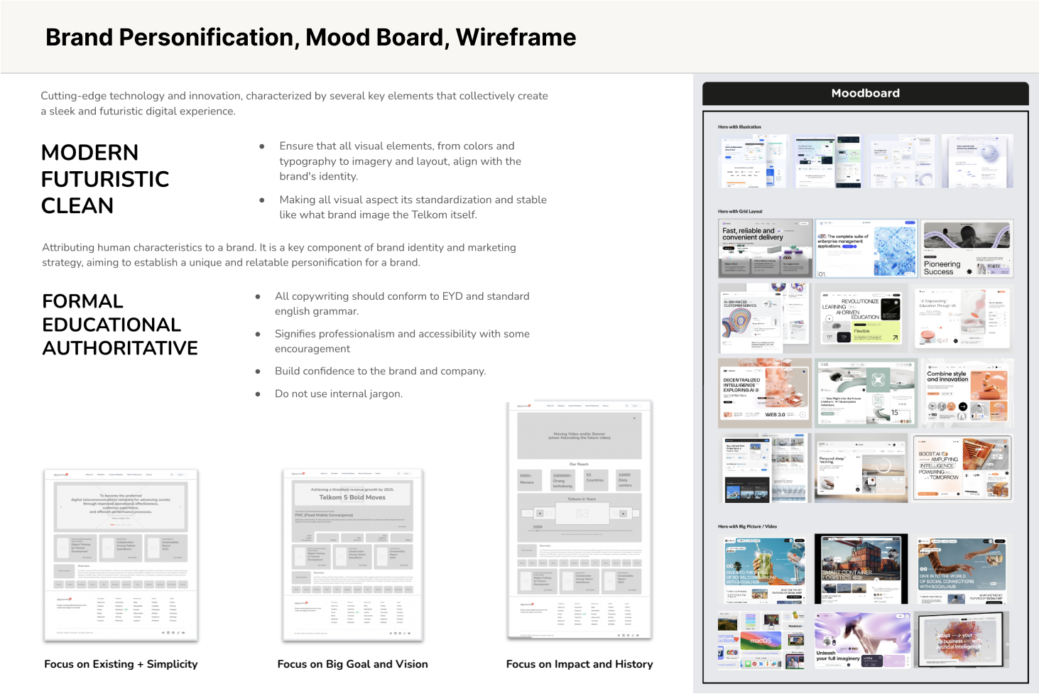The project aimed to redesign Telkom Indonesia's website to serve as the main reference portal for shareholders and an educational news portal. The redesign was part of Telkom's 2022 WeCare NITS program to consolidate and digitize IT architecture across TelkomGroup.